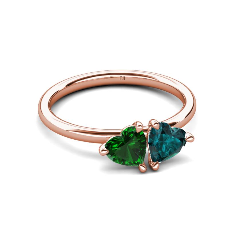 1.75 ctw Heart Shape (6.00 mm) Lab Created Emerald & London Blue Topaz with Tiger Claw Prong setting Two Stone Duo Women Engagement Ring in 14K Rose Gold More Details ...