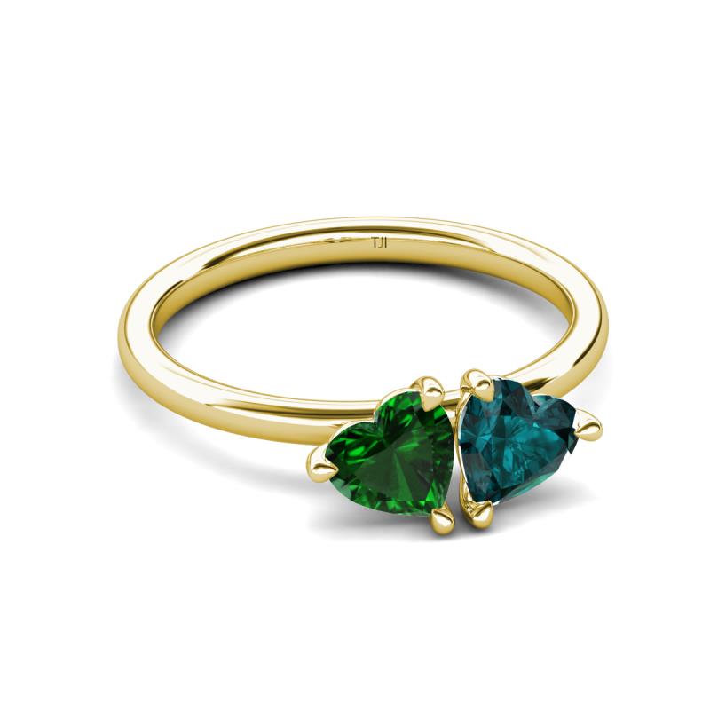 1.75 ctw Heart Shape (6.00 mm) Lab Created Emerald & London Blue Topaz with Tiger Claw Prong setting Two Stone Duo Women Engagement Ring in 18K Yellow Gold More Details ...