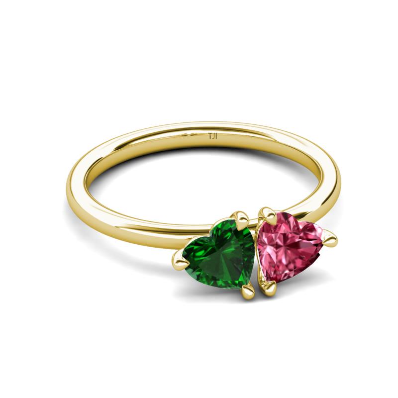 1.55 ctw Heart Shape (6.00 mm) Lab Created Emerald & Pink Tourmaline with Tiger Claw Prong setting Two Stone Duo Women Engagement Ring in 10K Yellow Gold More Details ...
