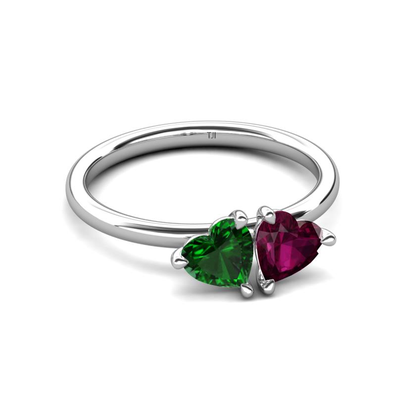 1.85 ctw Heart Shape (6.00 mm) Lab Created Emerald & Rhodolite Garnet with Tiger Claw Prong setting Two Stone Duo Women Engagement Ring in Platinum More Details ...