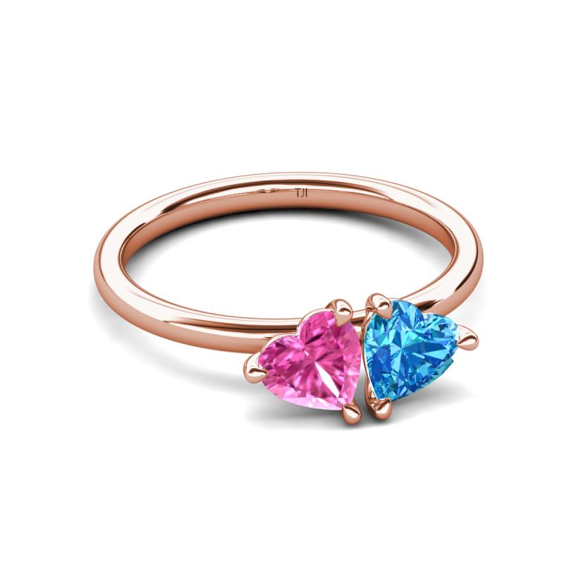 1.90 ctw Heart Shape (6.00 mm) Lab Created Pink Sapphire & Blue Topaz with Tiger Claw Prong setting Two Stone Duo Women Engagement Ring in 10K Rose Gold More Details ...