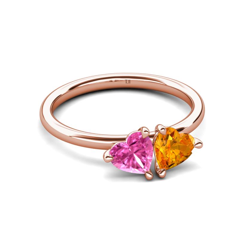1.58 ctw Heart Shape (6.00 mm) Lab Created Pink Sapphire & Citrine with Tiger Claw Prong setting Two Stone Duo Women Engagement Ring in 14K Rose Gold More Details ...