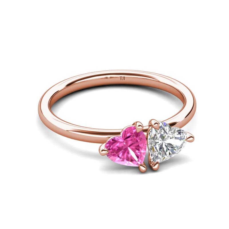 1.75 ctw Heart Shape (6.00 mm) Lab Created Pink Sapphire & IGI Certified Lab Grown Diamond with Tiger Claw Prong setting Two Stone Duo Women Engagement Ring in 10K Rose Gold More Details ...