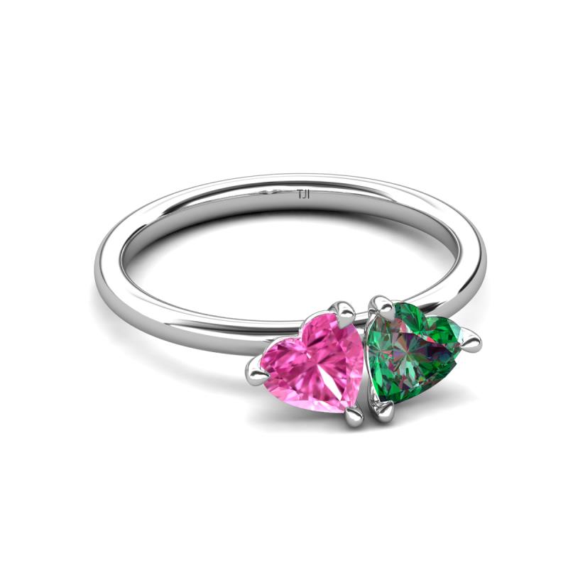1.65 ctw Heart Shape (6.00 mm) Lab Created Pink Sapphire & Lab Created Alexandrite with Tiger Claw Prong setting Two Stone Duo Women Engagement Ring in 14K White Gold More Details ...