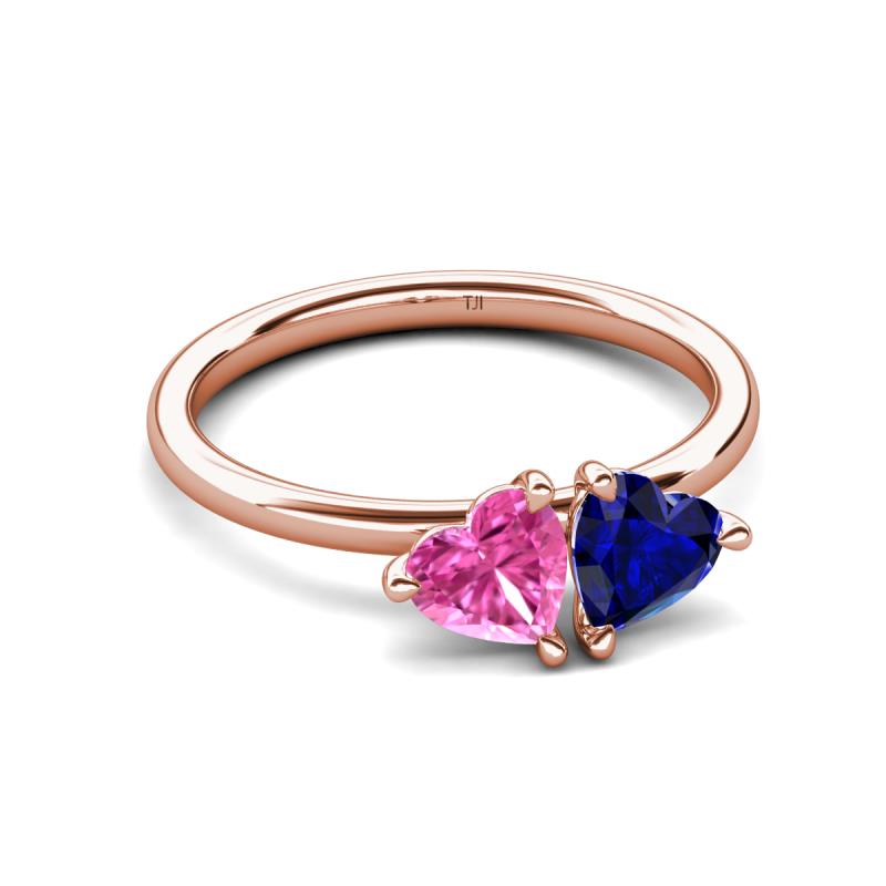 1.80 ctw Heart Shape (6.00 mm) Lab Created Pink Sapphire & Lab Created Blue Sapphire with Tiger Claw Prong setting Two Stone Duo Women Engagement Ring in 18K Rose Gold More Details ...