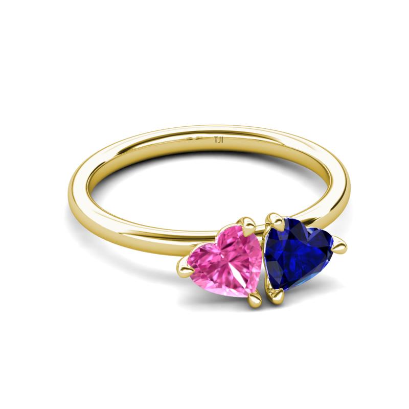 1.80 ctw Heart Shape (6.00 mm) Lab Created Pink Sapphire & Lab Created Blue Sapphire with Tiger Claw Prong setting Two Stone Duo Women Engagement Ring in 18K Yellow Gold More Details ...