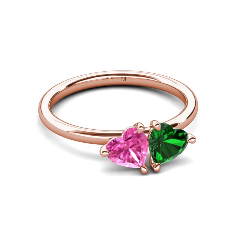 1.65 ctw Heart Shape (6.00 mm) Lab Created Pink Sapphire & Lab Created Emerald with Tiger Claw Prong setting Two Stone Duo Women Engagement Ring in 10K Rose Gold More Details ...