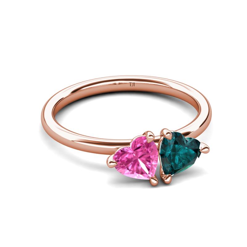 1.90 ctw Heart Shape (6.00 mm) Lab Created Pink Sapphire & London Blue Topaz with Tiger Claw Prong setting Two Stone Duo Women Engagement Ring in 18K Rose Gold More Details ...