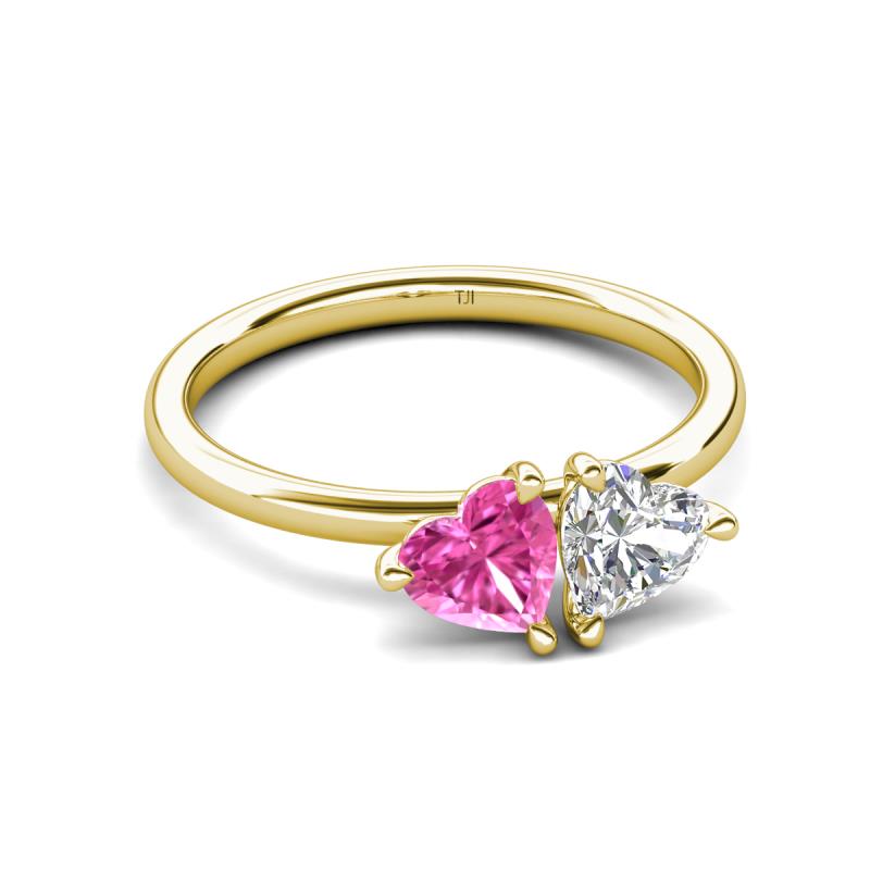 1.60 ctw Heart Shape (6.00 mm) Lab Created Pink Sapphire & Moissanite with Tiger Claw Prong setting Two Stone Duo Women Engagement Ring in 10K Yellow Gold More Details ...