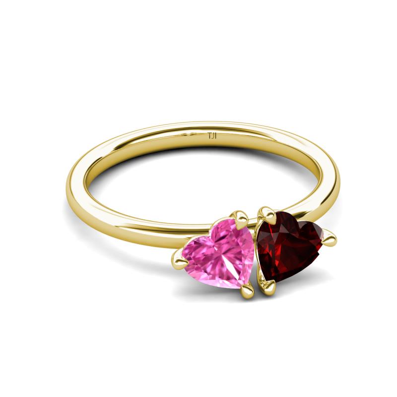 1.85 ctw Heart Shape (6.00 mm) Lab Created Pink Sapphire & Red Garnet with Tiger Claw Prong setting Two Stone Duo Women Engagement Ring in 18K Yellow Gold More Details ...
