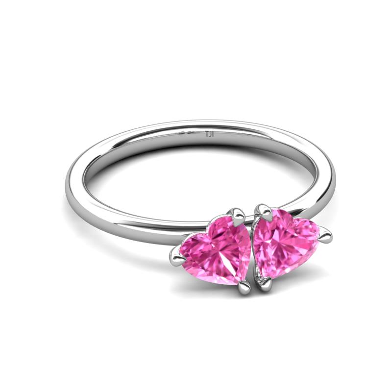 1.80 ctw Heart Shape (6.00 mm) Lab Created Pink Sapphire with Tiger Claw Prong setting Two Stone Duo Women Engagement Ring in 10K White Gold More Details ...