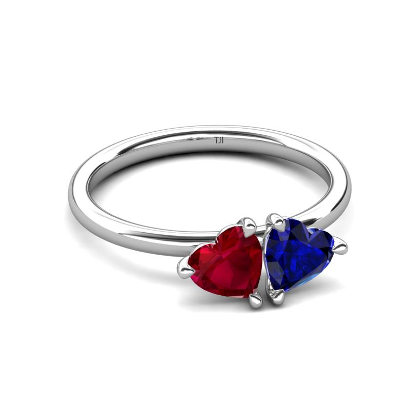 1.70 ctw Heart Shape (6.00 mm) Lab Created Ruby & Lab Created Blue Sapphire with Tiger Claw Prong setting Two Stone Duo Women Engagement Ring in 18K White Gold More Details ...