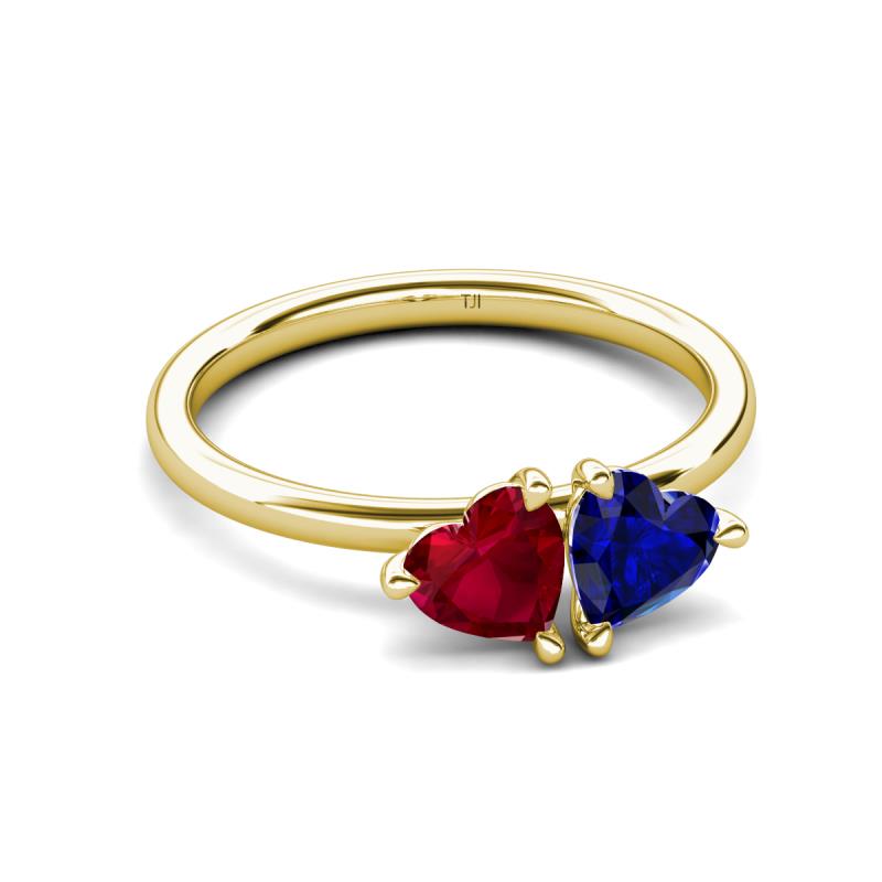 1.70 ctw Heart Shape (6.00 mm) Lab Created Ruby & Lab Created Blue Sapphire with Tiger Claw Prong setting Two Stone Duo Women Engagement Ring in 18K Yellow Gold More Details ...