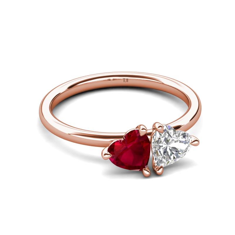 1.70 ctw Heart Shape (6.00 mm) Lab Created Ruby & Lab Created White Sapphire with Tiger Claw Prong setting Two Stone Duo Women Engagement Ring in 10K Rose Gold More Details ...