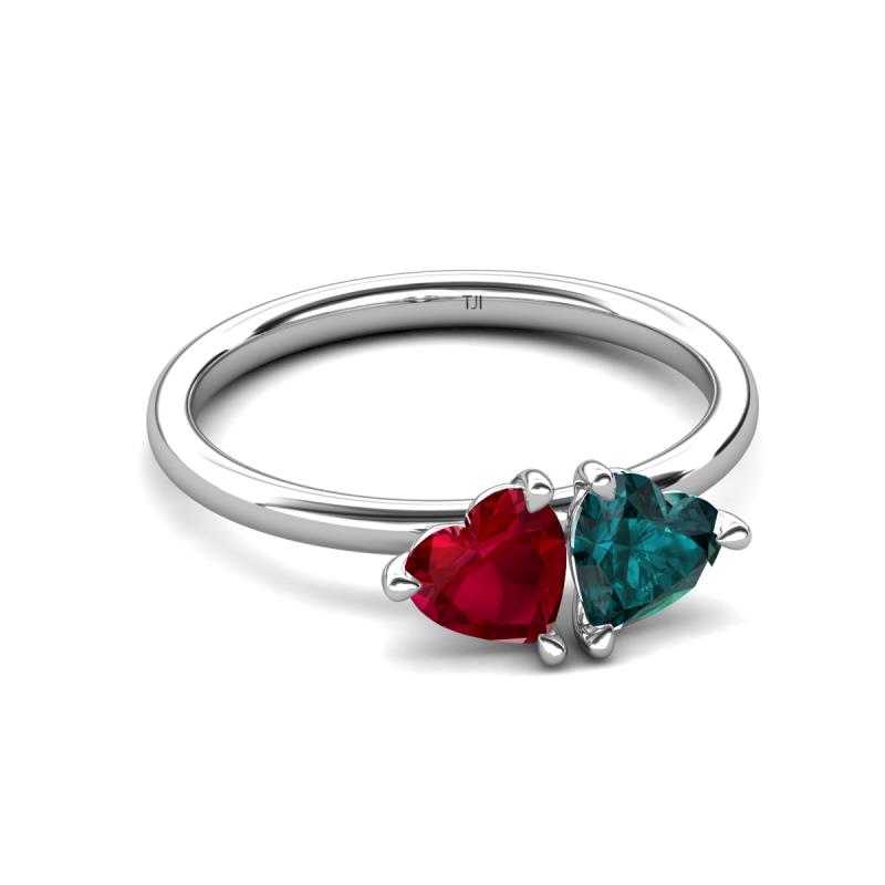 1.80 ctw Heart Shape (6.00 mm) Lab Created Ruby & London Blue Topaz with Tiger Claw Prong setting Two Stone Duo Women Engagement Ring in 14K White Gold More Details ...