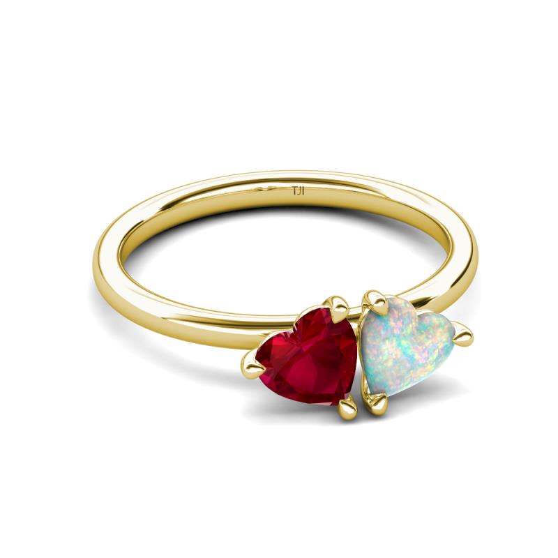 1.25 ctw Heart Shape (6.00 mm) Lab Created Ruby & Opal with Tiger Claw Prong setting Two Stone Duo Women Engagement Ring in 14K Yellow Gold More Details ...