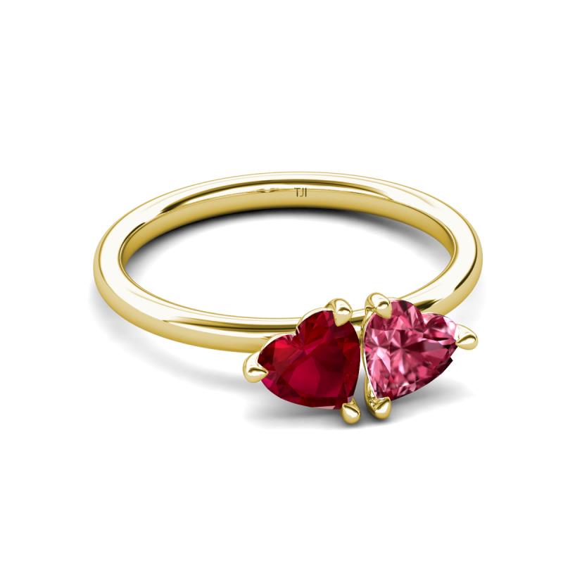 1.60 ctw Heart Shape (6.00 mm) Lab Created Ruby & Pink Tourmaline with Tiger Claw Prong setting Two Stone Duo Women Engagement Ring in 10K Yellow Gold More Details ...
