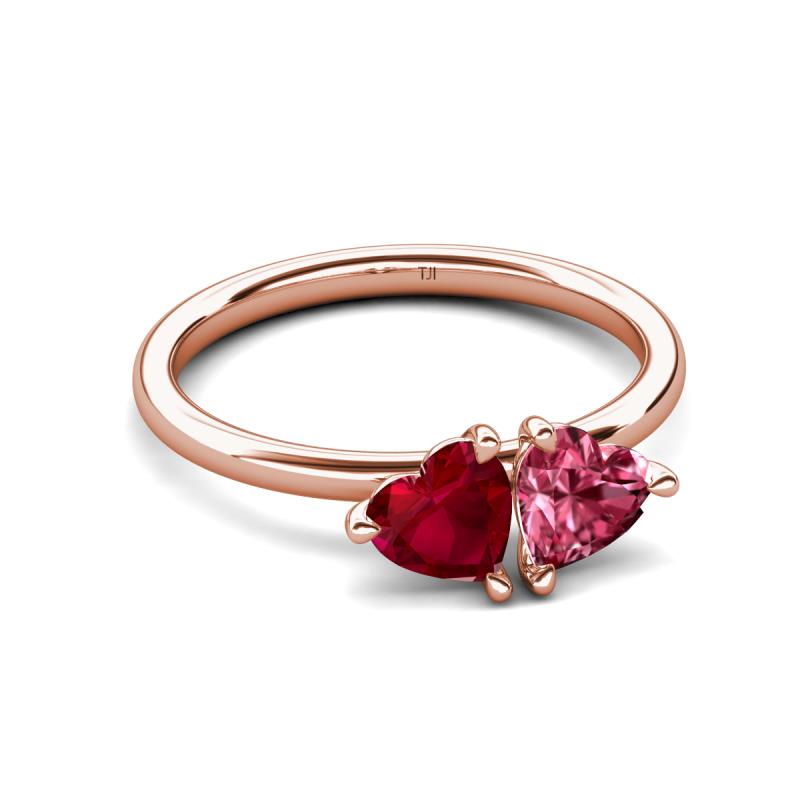 1.60 ctw Heart Shape (6.00 mm) Lab Created Ruby & Pink Tourmaline with Tiger Claw Prong setting Two Stone Duo Women Engagement Ring in 18K Rose Gold More Details ...