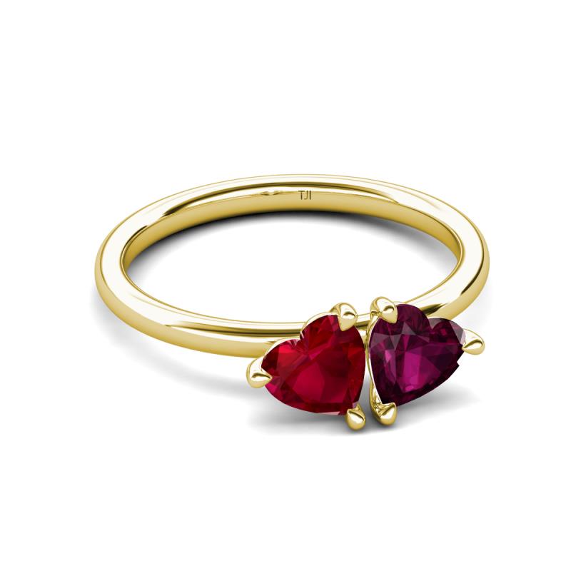 1.90 ctw Heart Shape (6.00 mm) Lab Created Ruby & Rhodolite Garnet with Tiger Claw Prong setting Two Stone Duo Women Engagement Ring in 10K Yellow Gold More Details ...