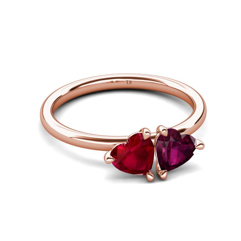 1.90 ctw Heart Shape (6.00 mm) Lab Created Ruby & Rhodolite Garnet with Tiger Claw Prong setting Two Stone Duo Women Engagement Ring in 18K Rose Gold More Details ...
