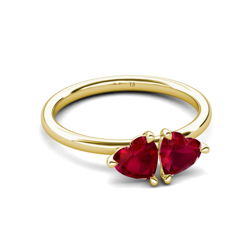 1.60 ctw Heart Shape (6.00 mm) Lab Created Ruby with Tiger Claw Prong setting Two Stone Duo Women Engagement Ring in 10K Yellow Gold More Details ...