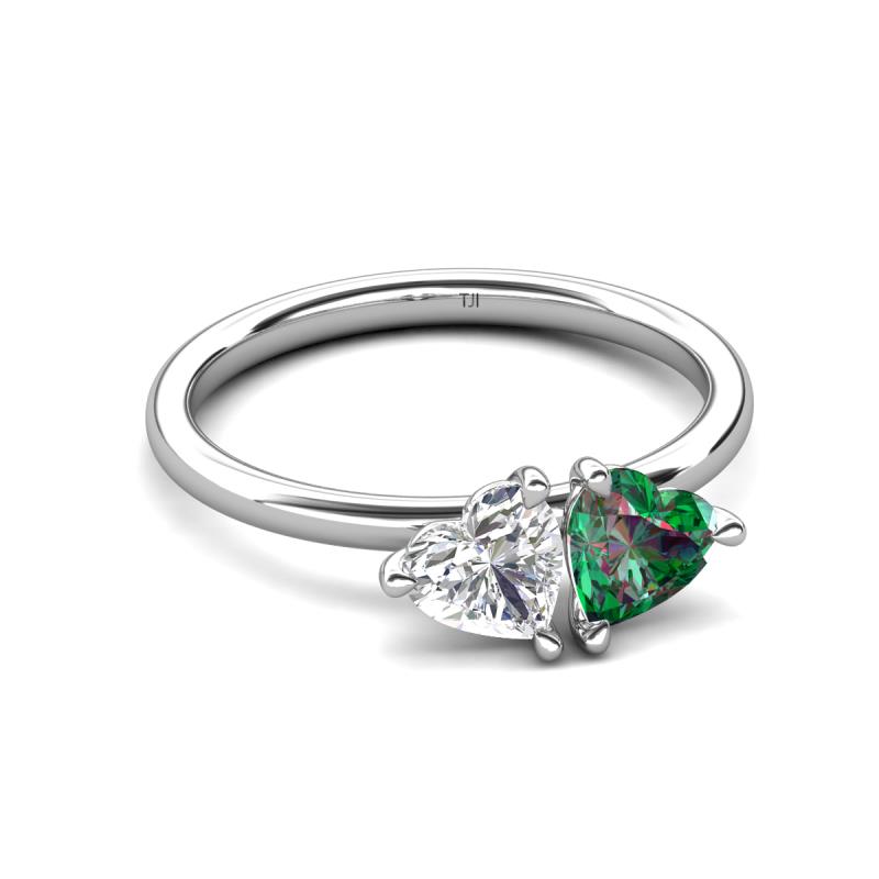 1.65 ctw Heart Shape (6.00 mm) Lab Created White Sapphire & Lab Created Alexandrite with Tiger Claw Prong setting Two Stone Duo Women Engagement Ring in 10K White Gold More Details ...