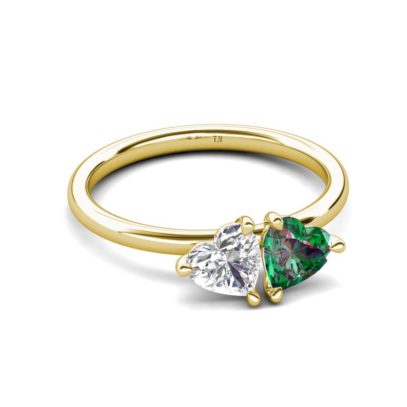 1.65 ctw Heart Shape (6.00 mm) Lab Created White Sapphire & Lab Created Alexandrite with Tiger Claw Prong setting Two Stone Duo Women Engagement Ring in 14K Yellow Gold More Details ...