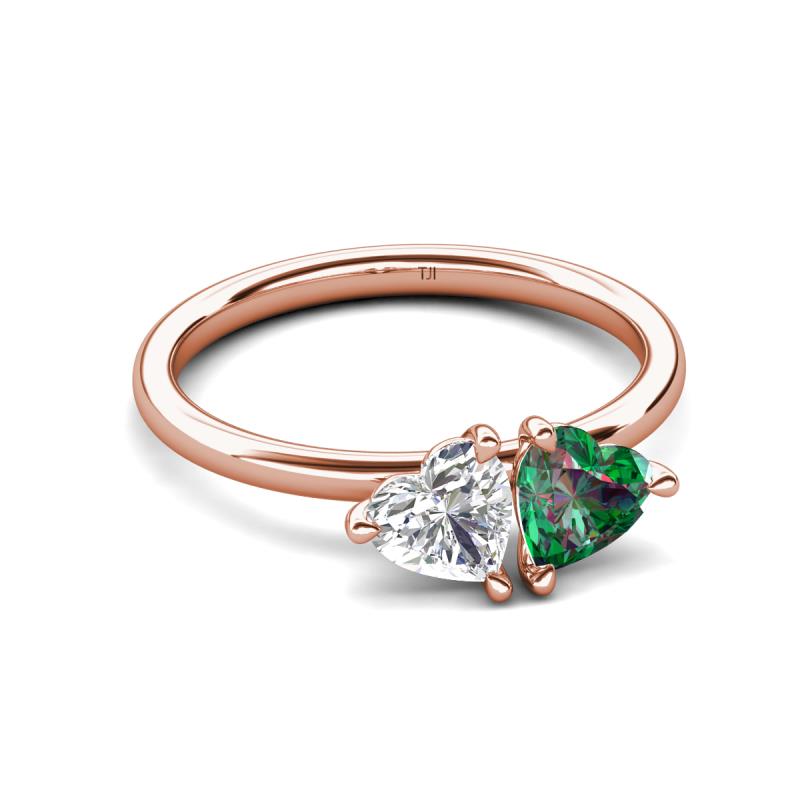 1.65 ctw Heart Shape (6.00 mm) Lab Created White Sapphire & Lab Created Alexandrite with Tiger Claw Prong setting Two Stone Duo Women Engagement Ring in 18K Rose Gold More Details ...