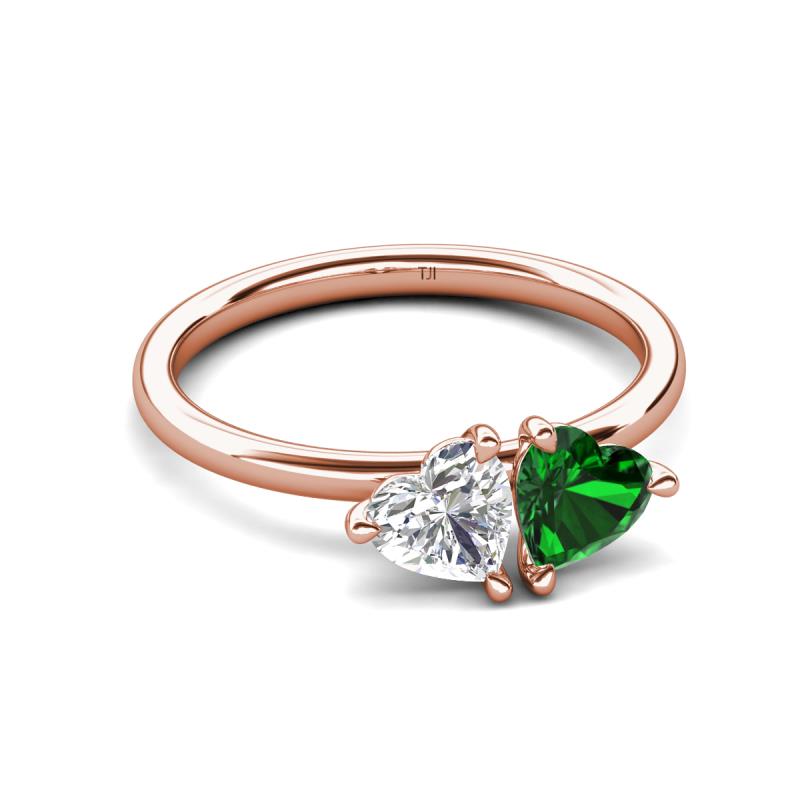 1.65 ctw Heart Shape (6.00 mm) Lab Created White Sapphire & Lab Created Emerald with Tiger Claw Prong setting Two Stone Duo Women Engagement Ring in 18K Rose Gold More Details ...