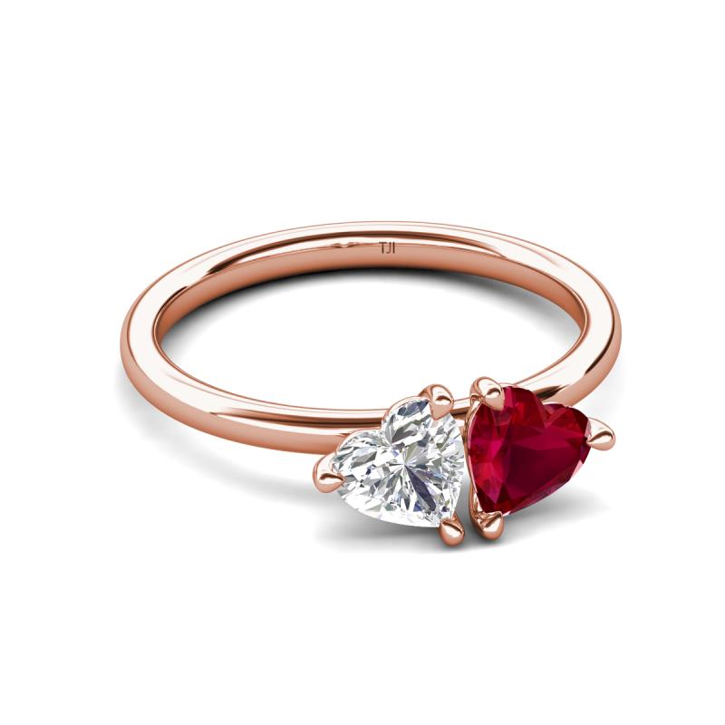 1.70 ctw Heart Shape (6.00 mm) Lab Created White Sapphire & Lab Created Ruby with Tiger Claw Prong setting Two Stone Duo Women Engagement Ring in 18K Rose Gold More Details ...