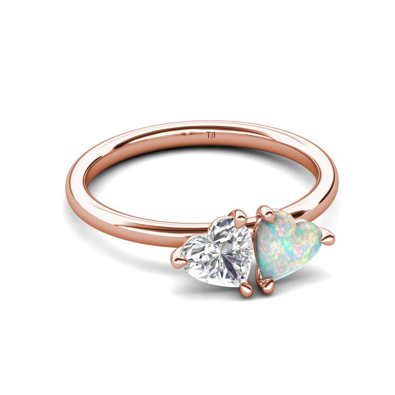 1.35 ctw Heart Shape (6.00 mm) Lab Created White Sapphire & Opal with Tiger Claw Prong setting Two Stone Duo Women Engagement Ring in 10K Rose Gold More Details ...