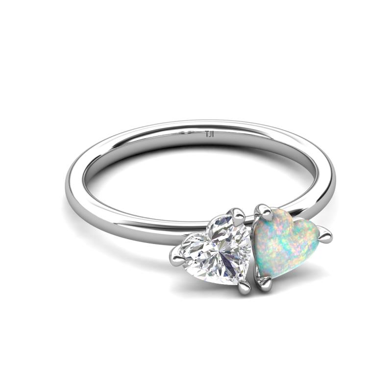 1.35 ctw Heart Shape (6.00 mm) Lab Created White Sapphire & Opal with Tiger Claw Prong setting Two Stone Duo Women Engagement Ring in Platinum More Details ...