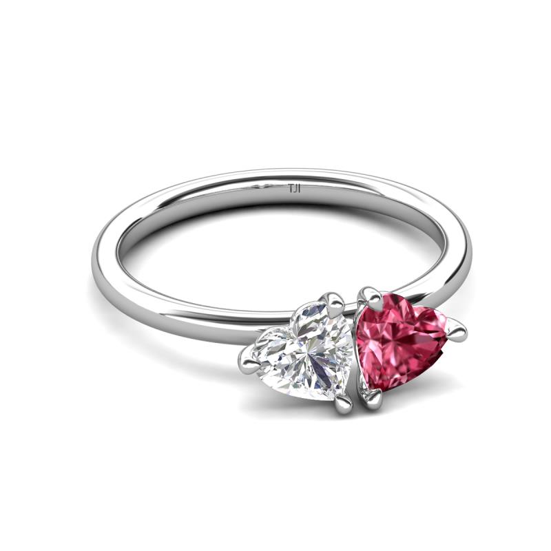 1.70 ctw Heart Shape (6.00 mm) Lab Created White Sapphire & Pink Tourmaline with Tiger Claw Prong setting Two Stone Duo Women Engagement Ring in 14K White Gold More Details ...