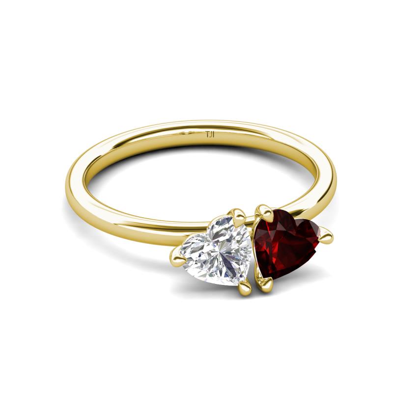 1.85 ctw Heart Shape (6.00 mm) Lab Created White Sapphire & Red Garnet with Tiger Claw Prong setting Two Stone Duo Women Engagement Ring in 14K Yellow Gold More Details ...