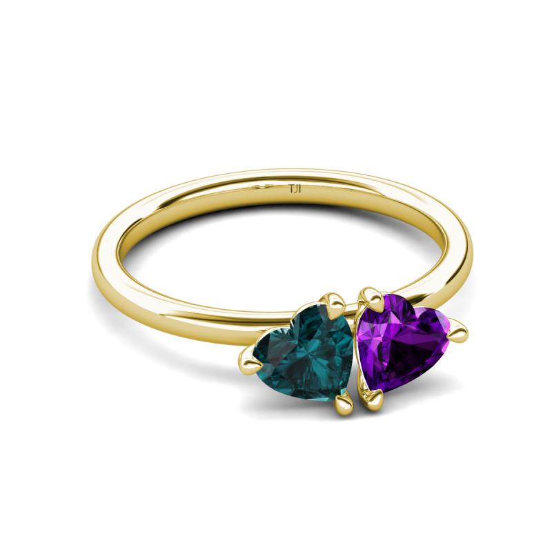 1.68 ctw Heart Shape (6.00 mm) London Blue Topaz & Amethyst with Tiger Claw Prong setting Two Stone Duo Women Engagement Ring in 10K Yellow Gold More Details ...