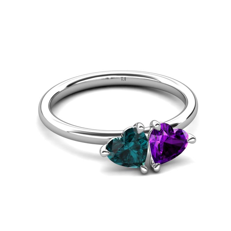 1.68 ctw Heart Shape (6.00 mm) London Blue Topaz & Amethyst with Tiger Claw Prong setting Two Stone Duo Women Engagement Ring in Platinum More Details ...