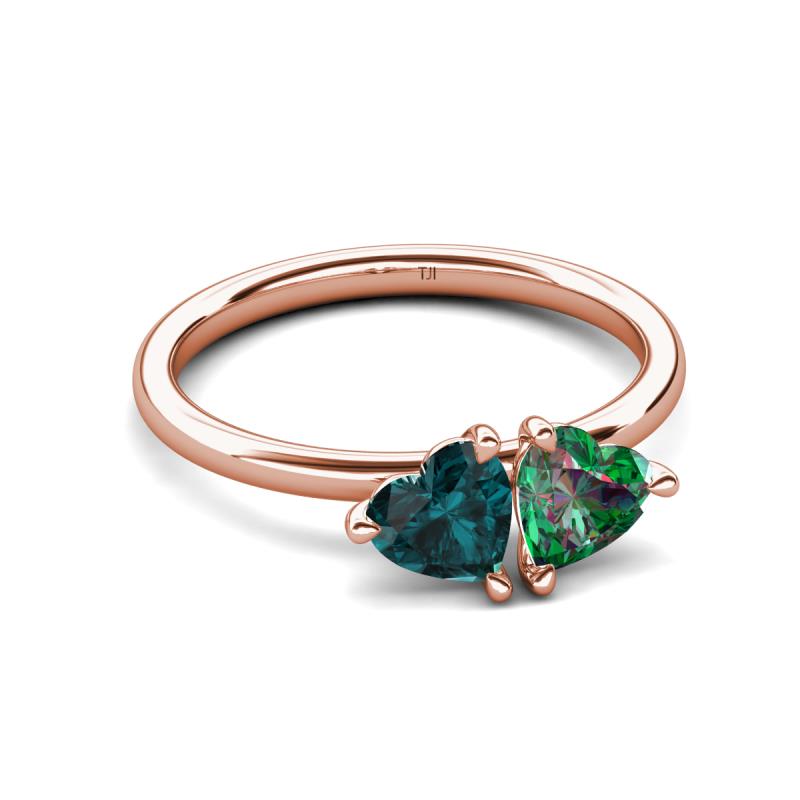 1.75 ctw Heart Shape (6.00 mm) London Blue Topaz & Lab Created Alexandrite with Tiger Claw Prong setting Two Stone Duo Women Engagement Ring in 10K Rose Gold More Details ...