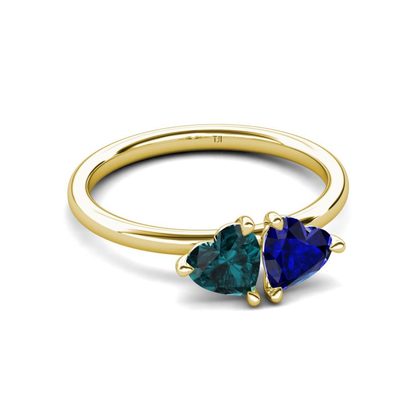 1.90 ctw Heart Shape (6.00 mm) London Blue Topaz & Lab Created Blue Sapphire with Tiger Claw Prong setting Two Stone Duo Women Engagement Ring in 14K Yellow Gold More Details ...