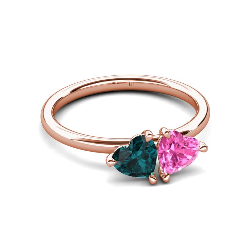 1.90 ctw Heart Shape (6.00 mm) London Blue Topaz & Lab Created Pink Sapphire with Tiger Claw Prong setting Two Stone Duo Women Engagement Ring in 10K Rose Gold More Details ...