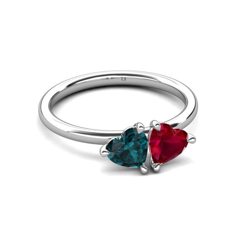 1.80 ctw Heart Shape (6.00 mm) London Blue Topaz & Lab Created Ruby with Tiger Claw Prong setting Two Stone Duo Women Engagement Ring in Platinum More Details ...