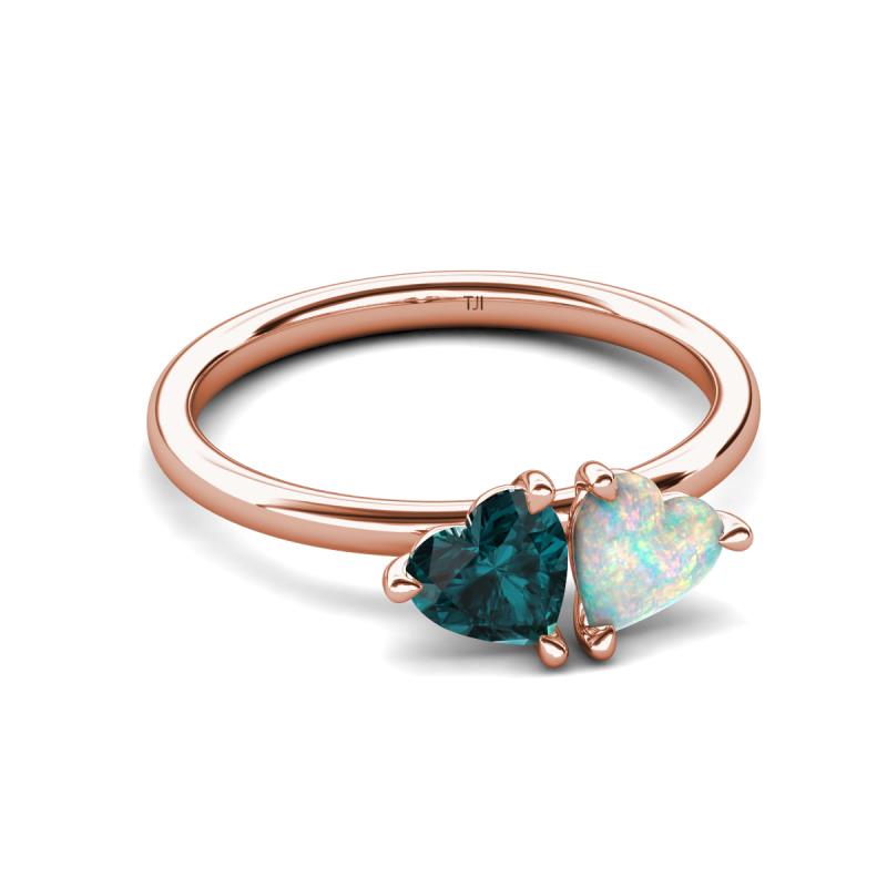 1.45 ctw Heart Shape (6.00 mm) London Blue Topaz & Opal with Tiger Claw Prong setting Two Stone Duo Women Engagement Ring in 10K Rose Gold More Details ...