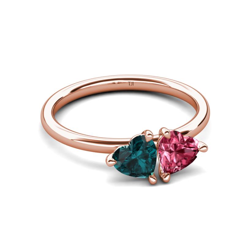 1.80 ctw Heart Shape (6.00 mm) London Blue Topaz & Pink Tourmaline with Tiger Claw Prong setting Two Stone Duo Women Engagement Ring in 18K Rose Gold More Details ...