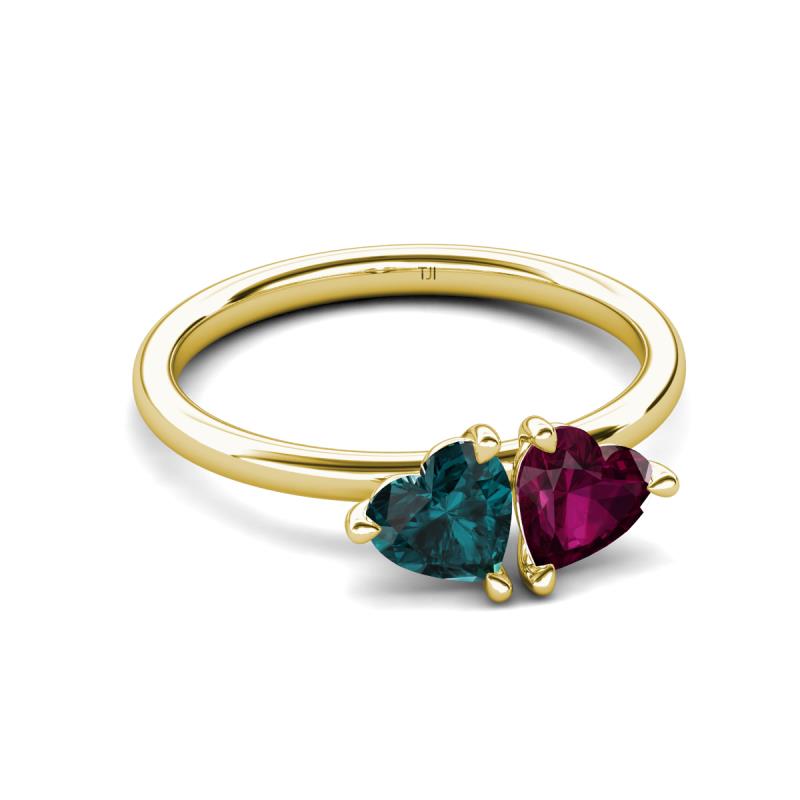 2.10 ctw Heart Shape (6.00 mm) London Blue Topaz & Rhodolite Garnet with Tiger Claw Prong setting Two Stone Duo Women Engagement Ring in 10K Yellow Gold More Details ...