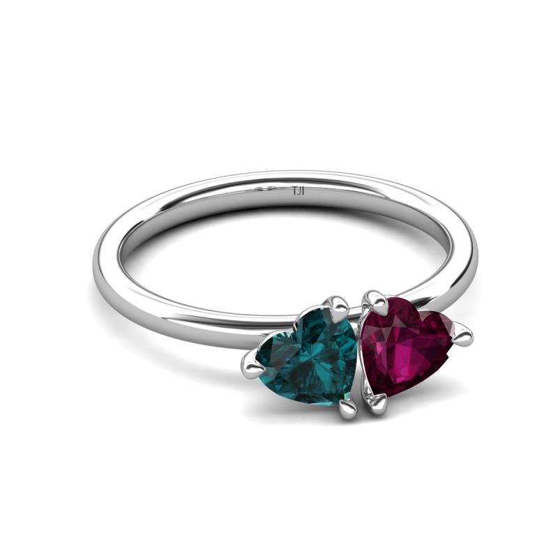 2.10 ctw Heart Shape (6.00 mm) London Blue Topaz & Rhodolite Garnet with Tiger Claw Prong setting Two Stone Duo Women Engagement Ring in 14K White Gold More Details ...