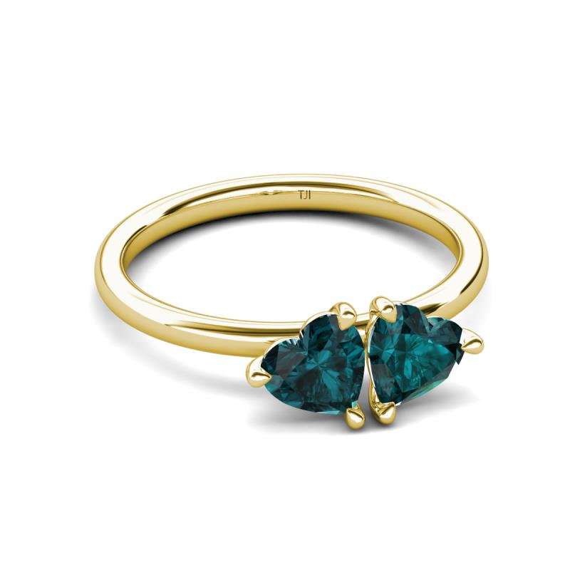 2.00 ctw Heart Shape (6.00 mm) London Blue Topaz with Tiger Claw Prong setting Two Stone Duo Women Engagement Ring in 14K Yellow Gold More Details ...
