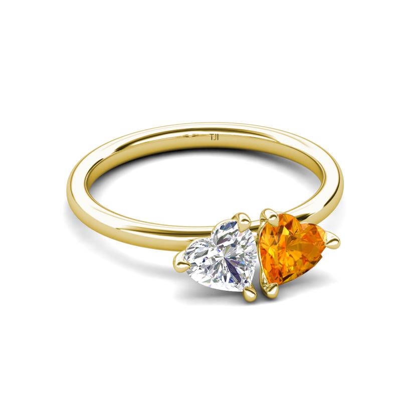 1.38 ctw Heart Shape (6.00 mm) Moissanite & Citrine with Tiger Claw Prong setting Two Stone Duo Women Engagement Ring in 10K Yellow Gold More Details ...