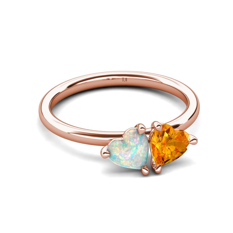 1.13 ctw Heart Shape (6.00 mm) Opal & Citrine with Tiger Claw Prong setting Two Stone Duo Women Engagement Ring in 18K Rose Gold More Details ...