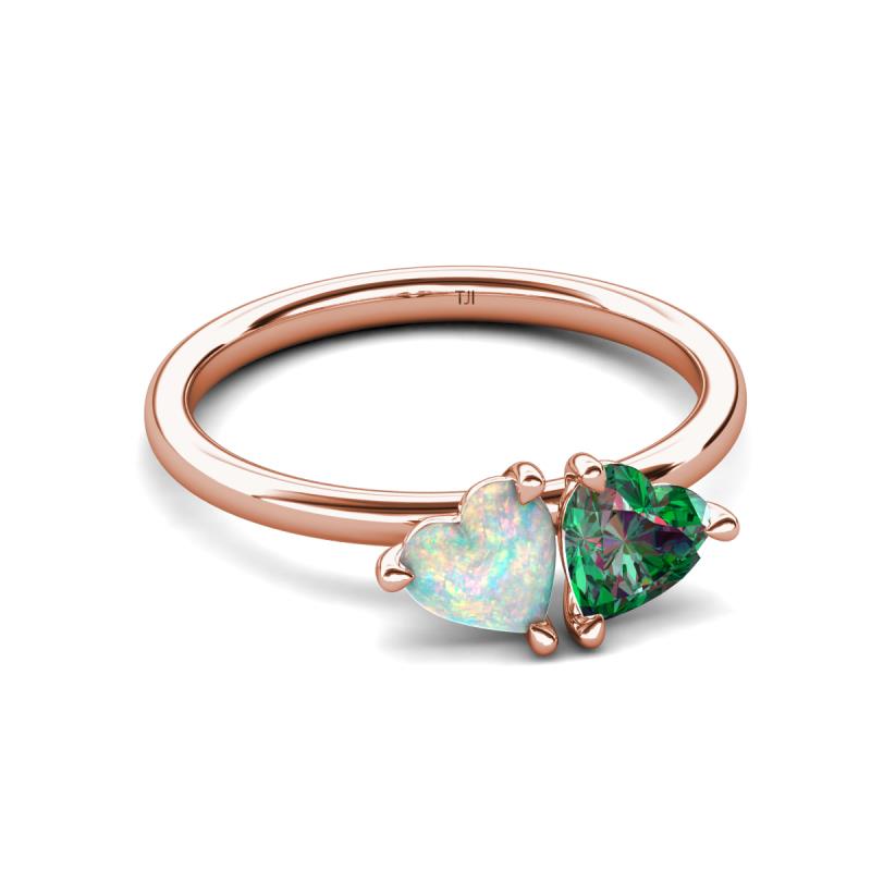 1.20 ctw Heart Shape (6.00 mm) Opal & Lab Created Alexandrite with Tiger Claw Prong setting Two Stone Duo Women Engagement Ring in 14K Rose Gold More Details ...