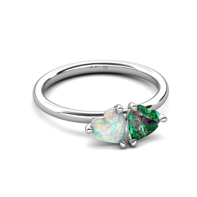 1.20 ctw Heart Shape (6.00 mm) Opal & Lab Created Alexandrite with Tiger Claw Prong setting Two Stone Duo Women Engagement Ring in 18K White Gold More Details ...