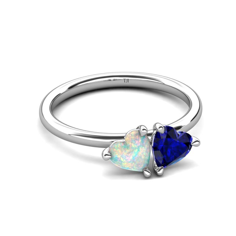1.35 ctw Heart Shape (6.00 mm) Opal & Lab Created Blue Sapphire with Tiger Claw Prong setting Two Stone Duo Women Engagement Ring in 10K White Gold More Details ...